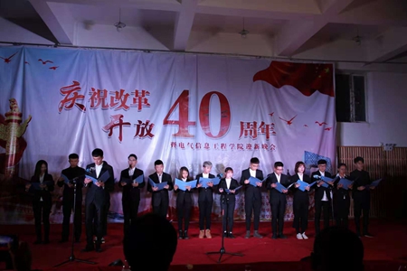 《红旗飘飘》铿锵有力的旋律拉开了汇演的序幕,表达出了新时代青年对党的热爱和祖国繁荣昌盛的自豪感;脱口秀《青春正当时》演绎出丰富多彩的老员工活的正反面;全体2018级班导生声情并茂的朗诵,词句间无不透露出团员青年对祖国的热爱,对改革开放四十周年所取得伟大成就由衷的感叹和对2018级新生殷切的盼望;大合唱《十七岁的青春》和《走进新时代》表现出电气学子讴歌新时代、歌唱美好生活的青春激情.....