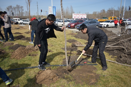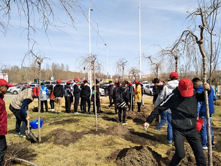 暖风习习,春日和煦,公司青年志愿者在韩巍老师的带领下开赴大庆市米兰小镇植树活动地点。在相关人员的专业指导下,拉开植树活动序幕。带队老师和志愿者们拿起铁锹、锄头,有的挥锹铲土、有的扶树填土、有的培土浇水,忙得不亦乐乎。经过一个多小时的劳动,把负责区域的相应位置都种上了新树。植树固然辛苦,但不管男生还是女生,同学们都能积极参与并乐在其中。在活动中领悟了植树的意义和价值。植树和每个人的梦想、渴望一样,都是从春天开始的,种下希望,收获梦想,所以要倍加珍爱绿色,珍爱环境。