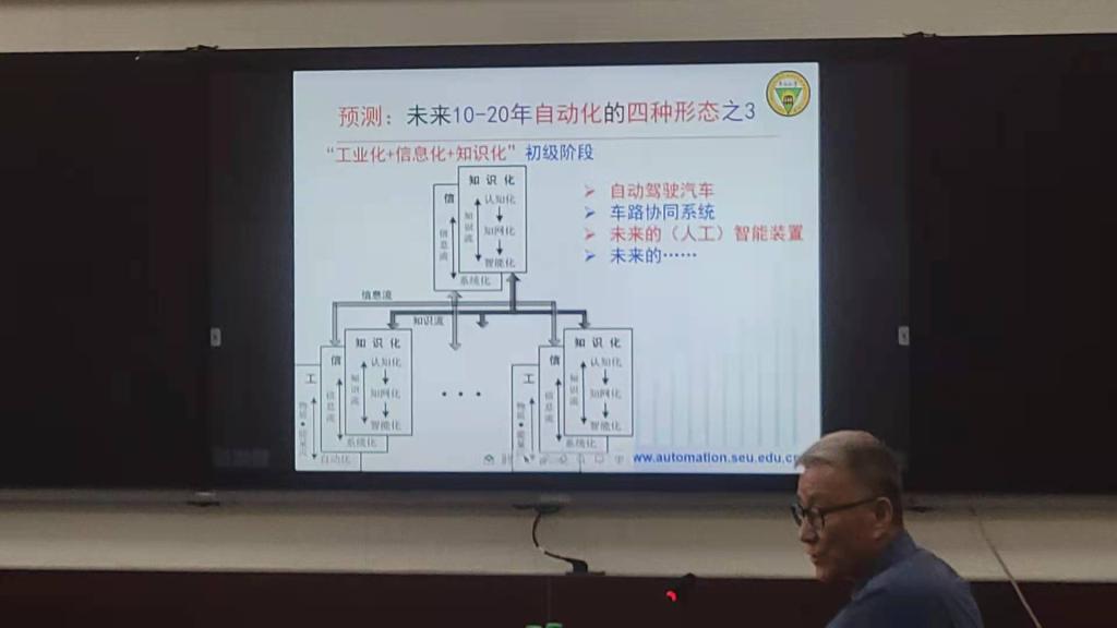 专题会议上,戴先中教授分别从何为均指向“自动化”,自动化发展回顾,知识自动化发展的两种形态,自动化专业知识体系,自动化专业课程体系改革等六个方面,向参会教师分享了人工智能莫干山论坛中获得的先进教学理念和学科课程与改革的发展方向。