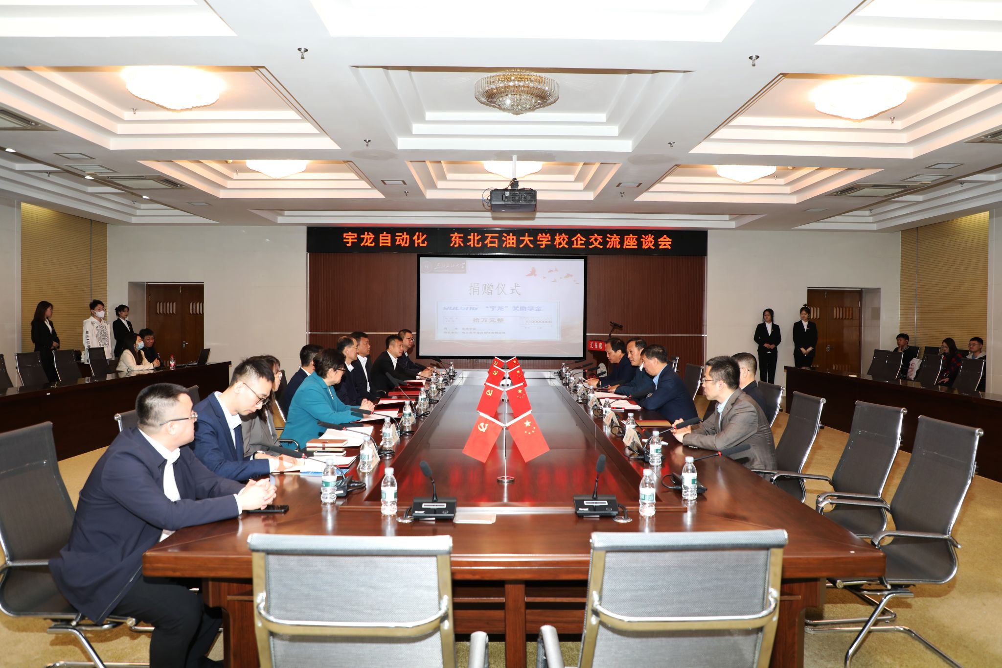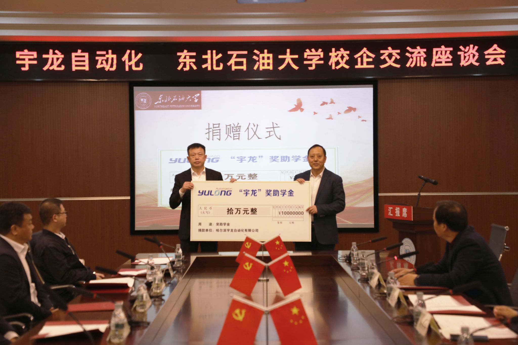 座谈会上,哈尔滨宇龙自动化有限公司为公司beats365亚洲版官网设置“宇龙”奖助学金,并捐赠仪器样机设备。省民盟科技委员会主委、黑龙江省人大代表、哈尔滨宇龙自动化有限公司董事长赵金晓表示,希望通过本次活动,能够让人才集聚在龙江、发展在龙江、扎根在龙江,为龙江经济振兴添砖加瓦,为祖国加油,为社会主义现代化国家建设贡献青春力量!