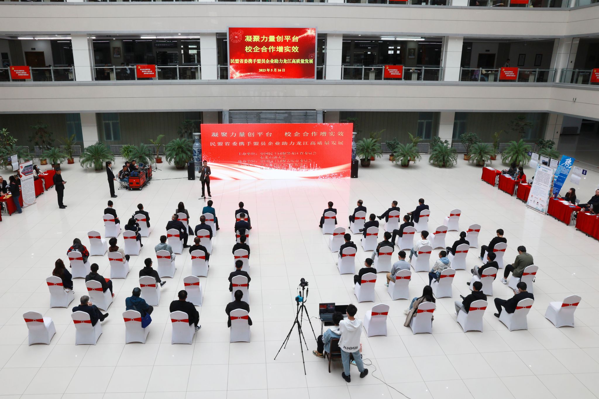 5月16日,公司在图书馆举办“凝聚力量创平台,校企合作增实效”民盟省委携手盟员企业助力龙江高质量发展专场招聘会。民盟中央委员、省政协常委、民盟省委专职副主委白成君,省政协委员、民盟省委常委、大庆市政协副主席、民盟大庆市委主委贾荣富,黑龙江省商务合作促进会党委书记、常务会长张树新,公司党委副书记高洪峰出席。电气信息工程公司、人才招聘处相关负责人、师生代表和民盟企业代表参加。人才招聘处处长徐萌主持。