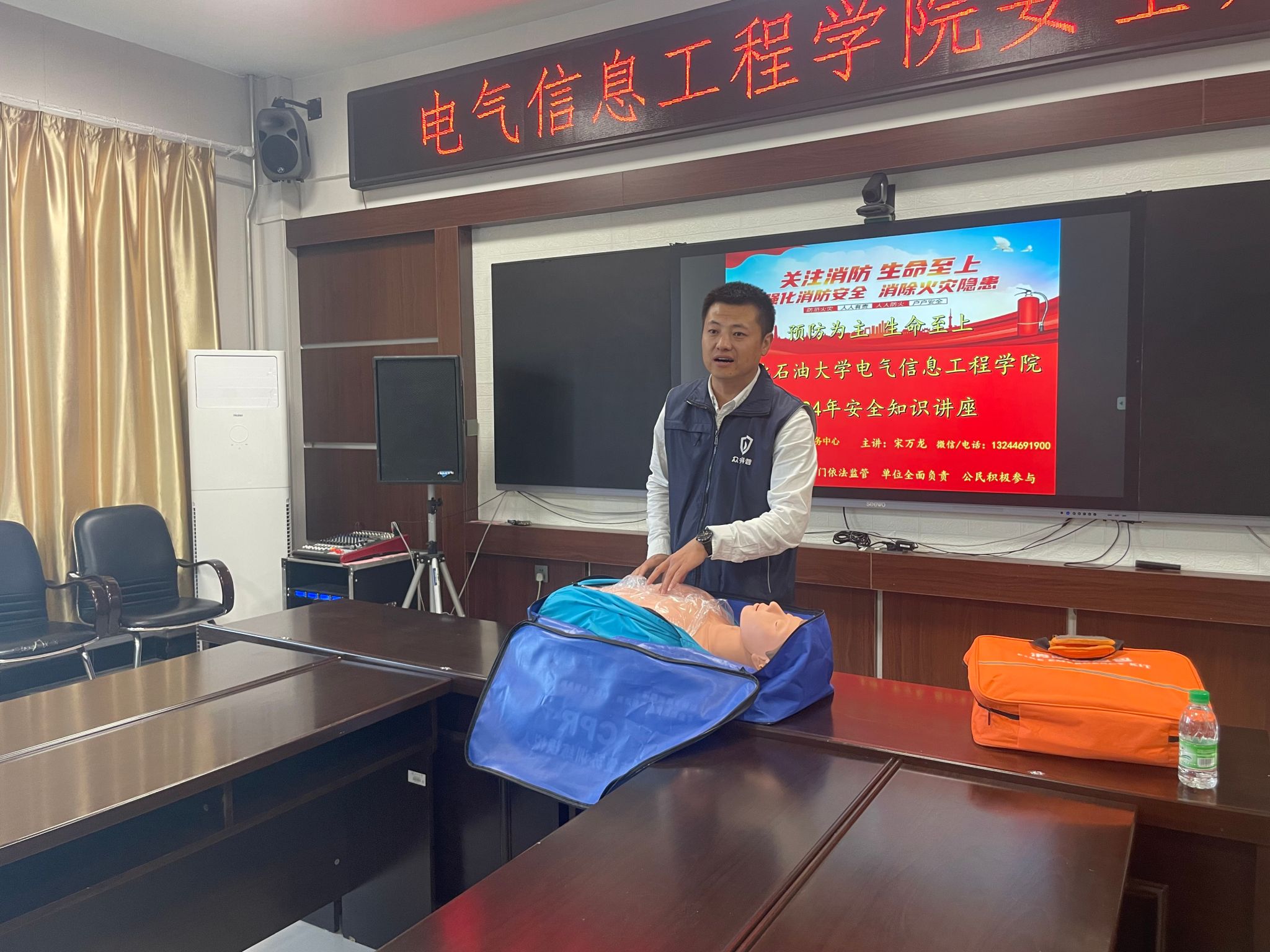 培训内容包括心肺复苏、海姆里克急救法、消防设施器材使用方法、消防安全知识、熟悉疏散逃生路线、掌握疏散逃生技能等。消防宣讲员为师生们讲解了火灾的危险性、防火的基本要求和注意事项等消防安全常识,并结合典型火灾案例,深入剖析了消防安全隐患特点,重点讲述了发生火灾时如何报警、如何正确逃生等消防安全知识。同时,紧紧围绕校园防火工作,向教职工讲解了初期火灾扑救的基本方法和如何引导员工疏散、开展自查自纠消除火灾隐患等防火灭火基本常识,让教职工加深对消防知识的了解。
