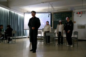 许丽伟老师上台为获得二等奖的经济管理公司和石油工程公司颁奖。