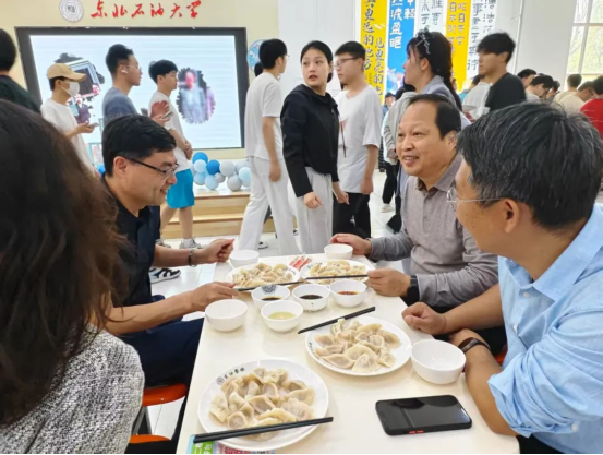 活动现场,一盘盘热气腾腾的饺子摆满餐桌,升腾的雾气中洋溢着欢声笑语。师生们围坐在一起,一边品尝鲜香可口的饺子,一边回忆大学四年的点滴成长,畅谈未来的理想与规划。小小的饺子里,包裹的不仅是美味,更是深厚的师生情谊与同窗之谊,现场氛围温馨而热烈。